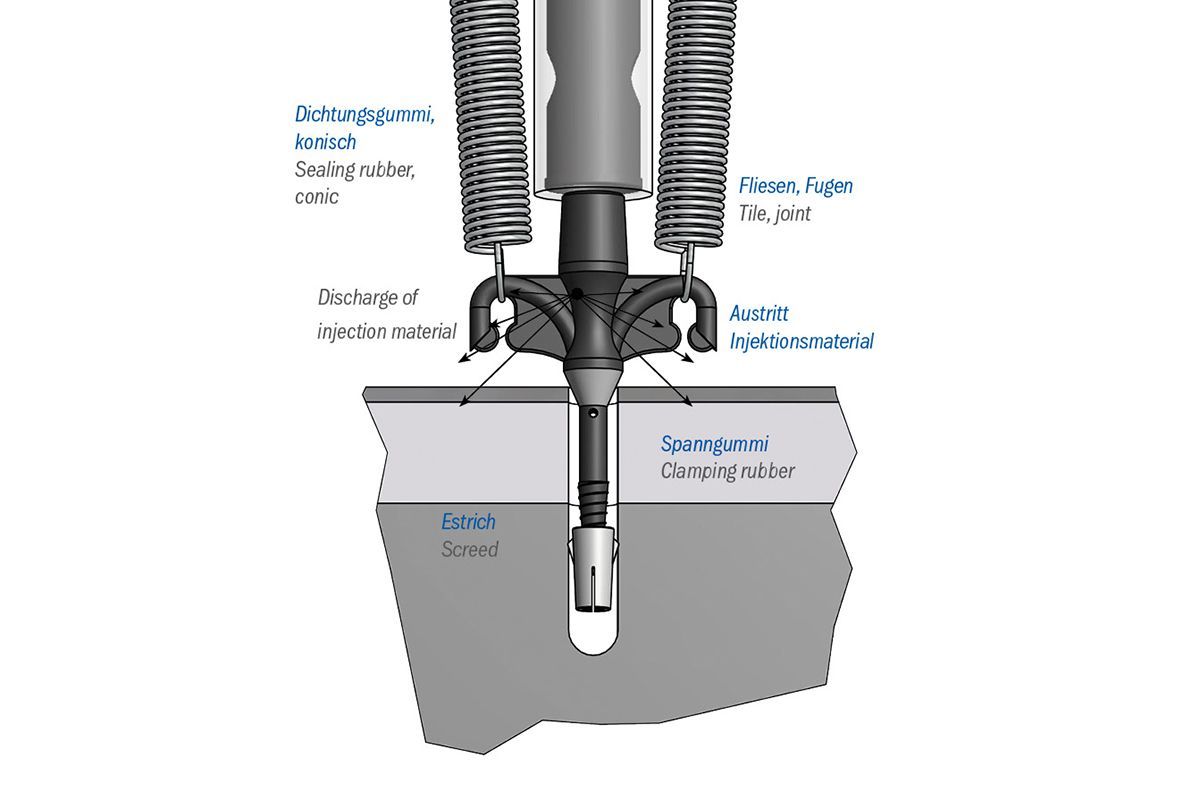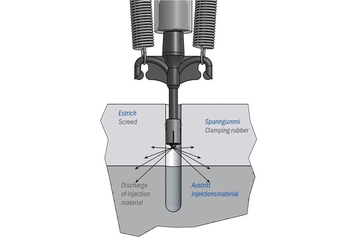 - Nach der Injektion werden die Injektionspacker entfernt bzw. nicht korrodierende Teile können im Bauwerk verbleiben (Vereinbarung mit dem Bauherren erforderlich)