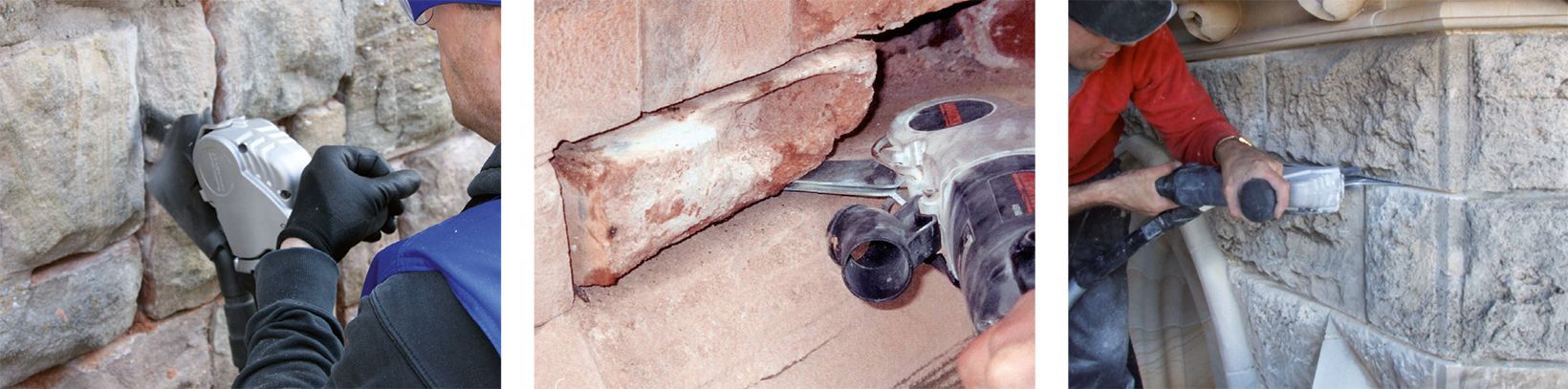 - Schneiden von horizontalen Fugen für DESOI Spiralanker