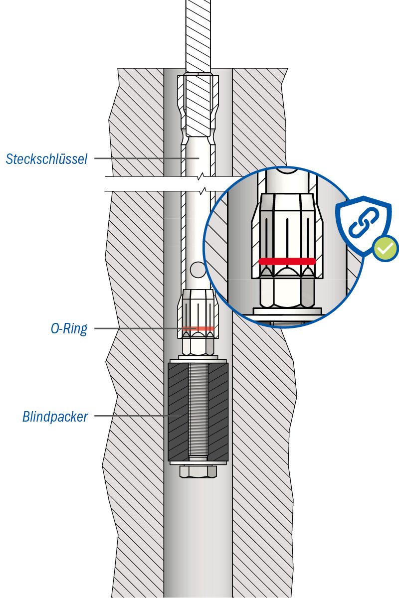Durch den O-Ring am Blindpacker wird der Steckschlüssel sicher fixiert.