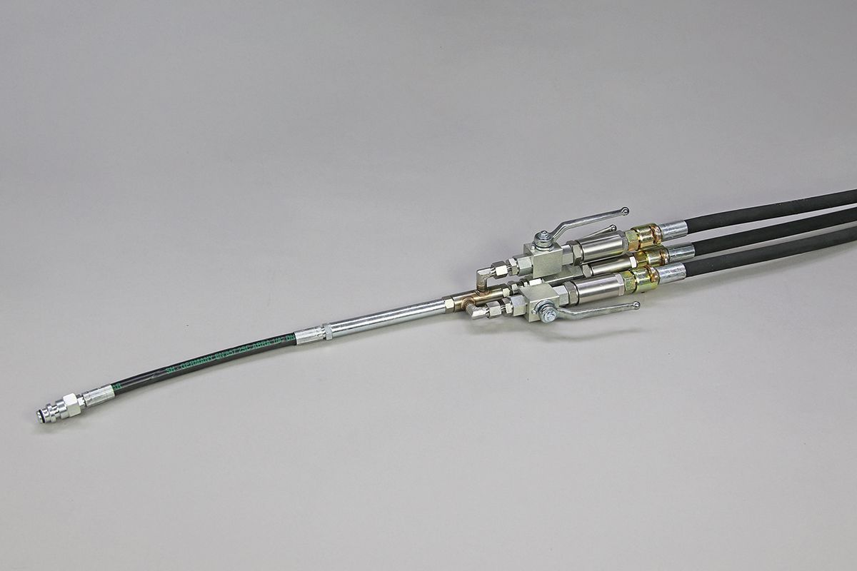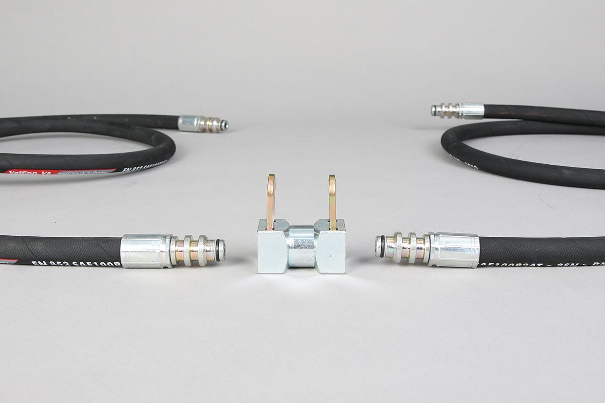 Das Steck-O Verbindungssystem dient dazu, Injektionsgeräte, Mischköpfe, Schläuche uvm. ohne den Einsatz von Gewinde- oder Flanscharmaturen miteinander zu verbinden. Einsetzbar ist das System im Hoch- und Niedrigdruckbereich.